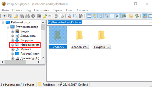 Она бесплатна. Первым делом нужно скачать imagine с русского сайта. Затем устанавливаем софт. Установка простая. Установив программу, у нас открывается окно. Обращаем внимание на открывшийся проводник в левом окне. У меня по умолчанию открылась системная папочка «Изображение».