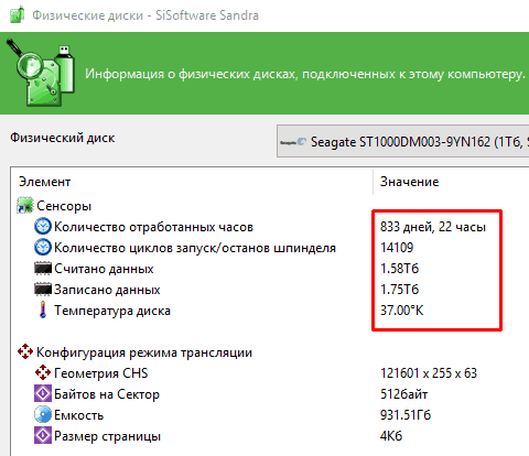 Очень важно посмотреть количество отработанных часов. Их должно быть немного. Чем больше, тем хуже. От количества выключений портится жесткий диск. Например, у меня 833 дня – это нормально. По этим данным вы можете понять, новый жесткий диск, или БУ.